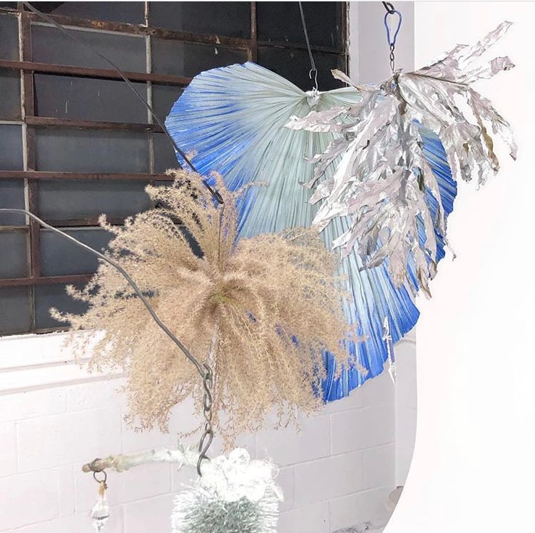 Steel, various plant matter, acrylic paint, crystals, ribbon, 2018